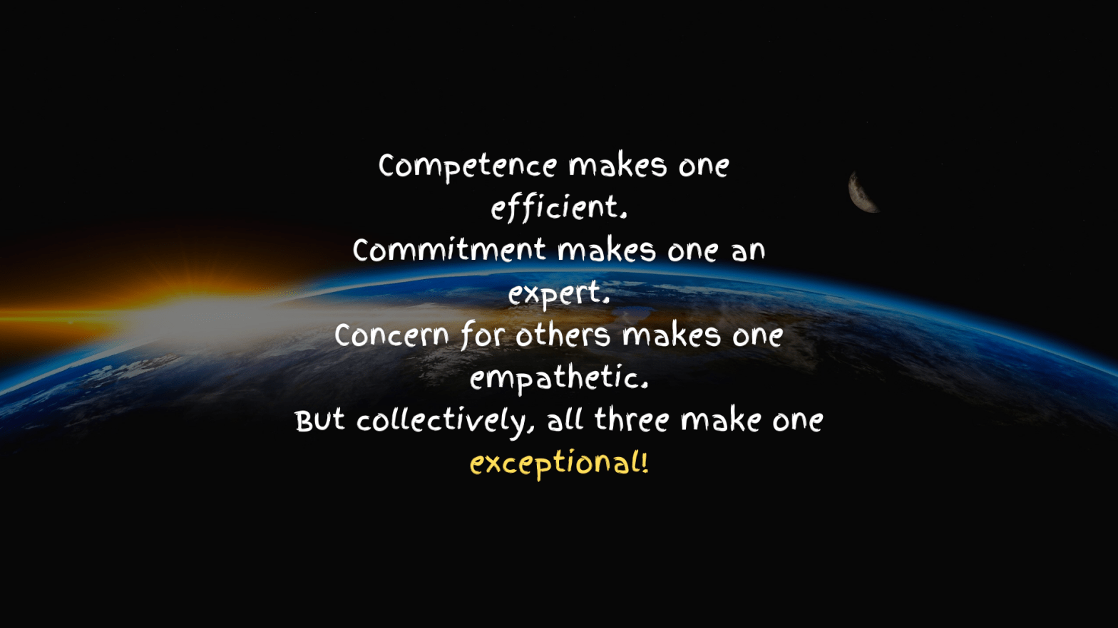 Many of us aspire to be exceptional, don’t we? Some use words like gifted and talented to describe exceptionality in humans. I ask YOU what makes a person exceptional? Almost certainly, many of you may have immediately thought of outstanding abilities and skills that make a person exceptional. Let’s call this competence. One can easily recallContinue reading “Becoming exceptional with three simple things”